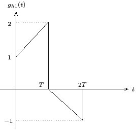 $$ g_{h1}(t) = (1+ \frac{t}{T})[u(t)-u(t-T)]+ (1- \frac{t}{T})[u(t-T)-u(t-2T)] \tag{8} $$
