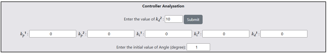 - Enter the value of the gain kd2 (a positive integer value) in Controller Analysation box and click on 'Submit' button.
