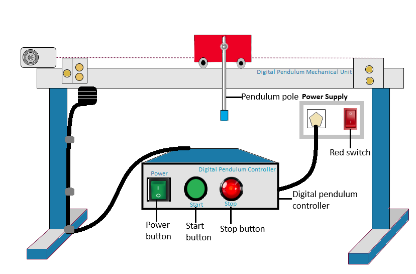 - Switch on the power supply by clicking on the 'Red Switch' under digital pendulum mechanical unit.