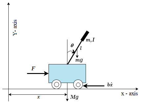 Summing the forces acting on the cart-pendulum system (Fig. 2) the following nonlinear equations of motion are obtained.