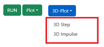 - Click on '3D-Plot' button then on either '3D Step' or '3D Impulse' (depending on the type of input signal, chosen in step 1)