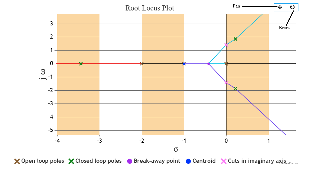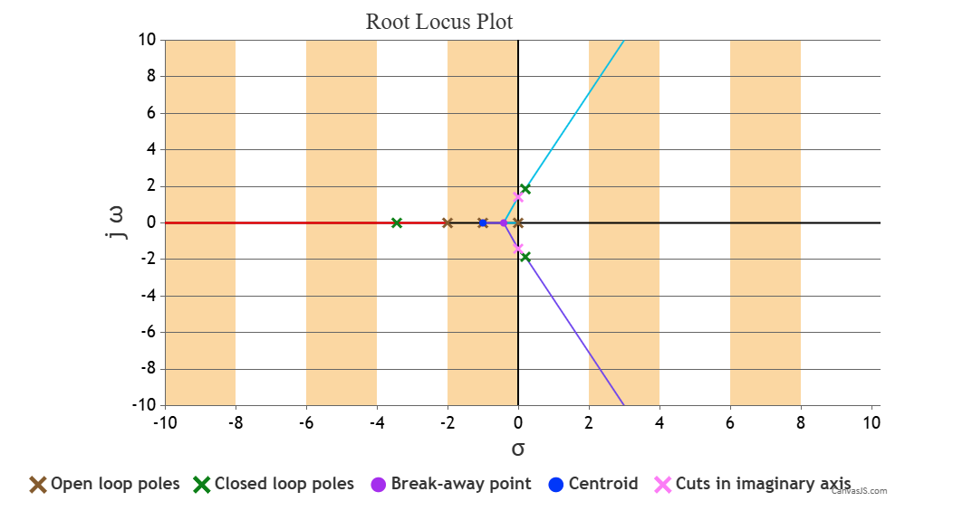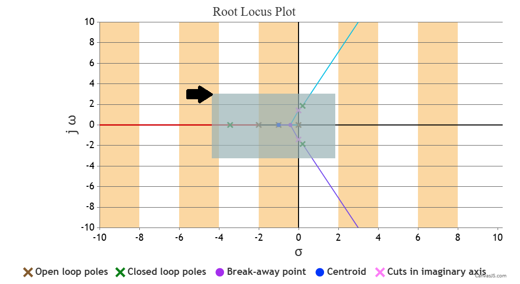 - Change the K value and follow step 2 to observe the root locus plot of the system for that K value.