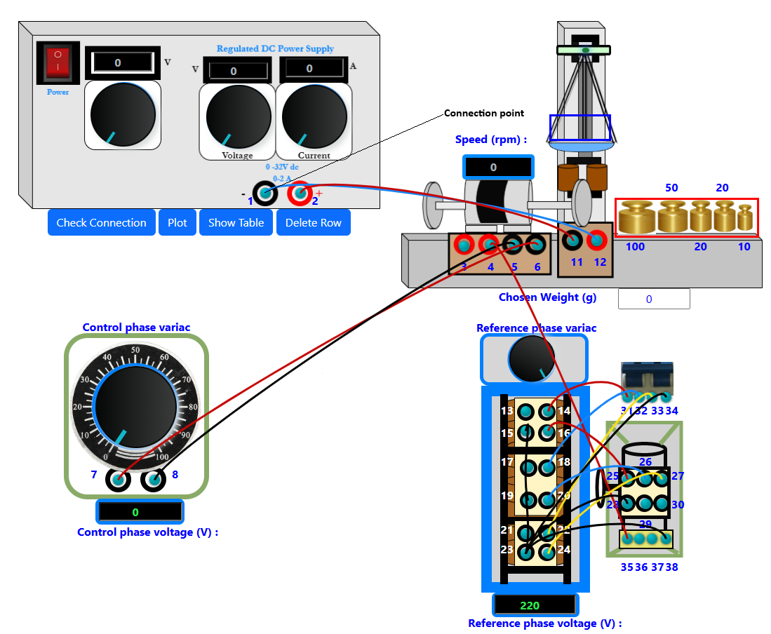 - This will be fixed throughout the experiment. Rotate the 'Control phase' variac to provide the control phase voltage to 220 V.