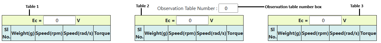 - Note: There will be observations for three successive control phase voltages in three different tables, for first one the number entered will be 1. It means